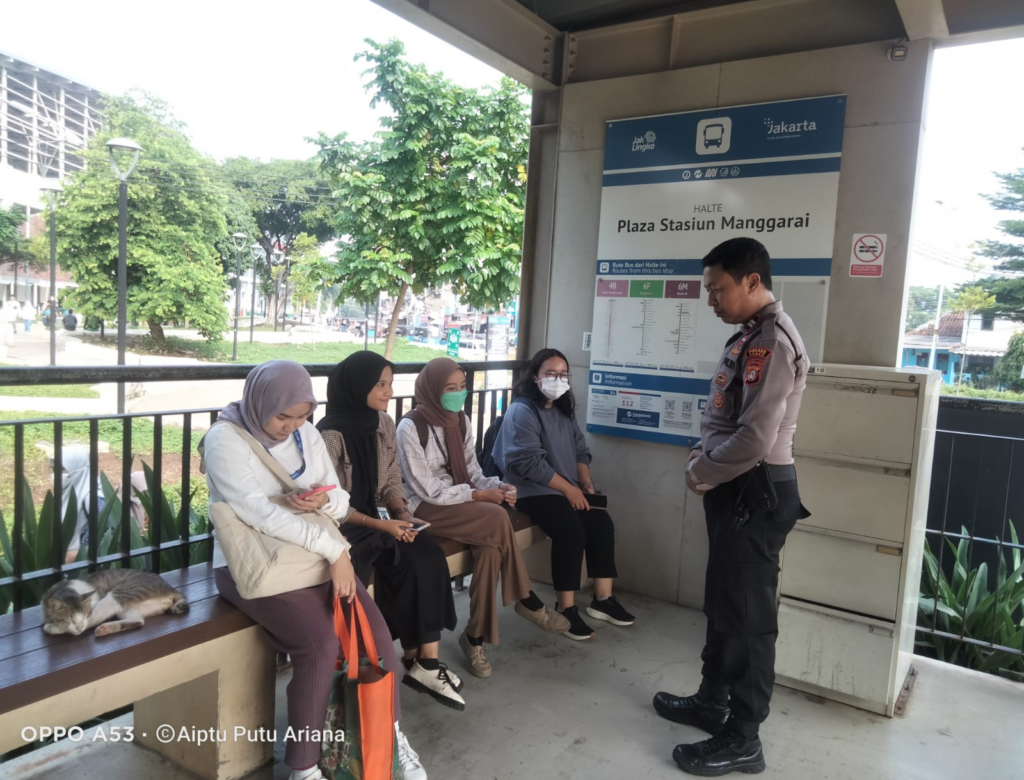 Kegiatan dilaksanakan oleh personel Unit 81 yakni Aiptu Priyantono dan Aiptu I Putu Ariana di Halte Plaza Transjakarta, Jln. Manggarai Utara 1, Kelurahan Manggarai, Kecamatan Tebet, Jakarta Selatan.